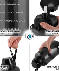 Hydration Nation 1 Gallon Water Bottle With Straw & Time Marker Quotes – For Fitness, Sports & More