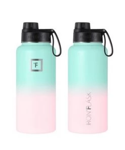 IRON FLASK 32oz Wide Mouth Sports Water Bottle – 3 Lids, Leak Proof, Double Walled Vacuum Insulated Bubble Gum