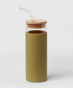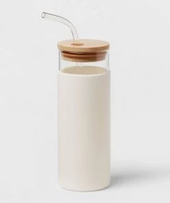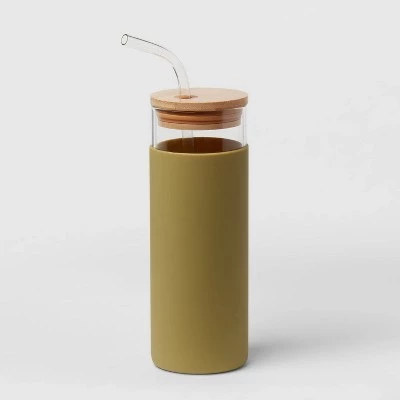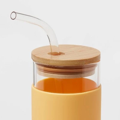 Whether you’re reading, writing or busy with other activities, you’ll stay hydrated when you keep this 16.9-Ounce Glass Tumbler with Straw and Silicone Sleeve from Threshold™ close by. This glass tumbler features a solid-color design with a transparent top and wood-tone lid for an elegant construction that suits your daily style. The included straw helps you drink conveniently while the silicone sleeve helps provide a secure fit. Use this lidded tumbler at home, at the office or anywhere on the go to sip your favorite cold beverages with ease.