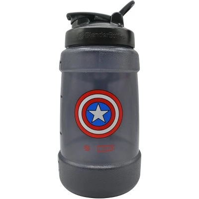 Serious workouts call for serious hydration. At 2.2 liters, the Blender Bottle Marvel Hydration Koda is designed to keep you hydrated through a big workout, long weekend, or hectic day ahead. Hitting your daily water quota has never been easier! Enjoy enhanced features like the popular SpoutGuard to protect from dirty gym fingers, a secure screw-on lid, and enormous capacity to satisfy a monster thirst. With a streamlined design, comfortable carry loop, and sure-grip handle, the Koda is built to effortlessly haul around all the fluids you need. Simply secure the lid, close the flip cap, and get moving. You can even toss it in your car or gym bag without worrying about leaks. Made with high quality materials and is BPA/phthalate free.