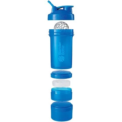The Blender Bottle ProStak 22 oz. Shaker with Loop Top offers total convenience with a fortified protein shake and an attached compartment for supplements! 22 ounce BlenderBottle for liquid shakes. ProStak system for storage of powders, pills and supplements including 150 and 100 cubic centimeter jars. Interlocking jars can be used with or without the bottle. Leak-proof sure seal flip cap and a secure screw-on lid and loop top. BPA and phthalate free. Why the Whisk Ball? Unlike stationary mesh grates or other in-lid elements, the BlenderBall whips around inside the bottle as you shake. The BlenderBall is springy and bounces off both the top and the bottom of the bottle, working against the liquids. Made from electropolished 316 grade stainless steel, the same material used in surgical instruments and implants. Add ingredients like peanut butter, applesauce or yogurt to your protein or meal-replacement shakes for added flavor – the BlenderBall whips them in with ease. The BlenderBall will never rust, chip or peel. Every BlenderBall is manufactured using a unique multistage process designed to ensure safety, quality, and longevity.
