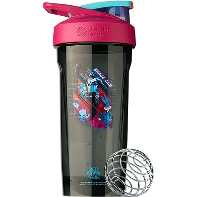 Whether you’re weight training for sports, competing for gold at the Olympics, or simply aiming to lose weight and stay fit, Blender Bottle’s premium and innovative products help you maintain proper nutrition and hydration every step of the way. With the Blender Bottle Space Jam: A New Legacy Strada 24 oz. Tritan Shaker Cup, you can mix up the toughest protein and meal replacement powders. Add a banana or mix in a little ice cream. Whatever you are craving, Blender Bottle has you covered. Features: Opens effortlessly with just the push of a button. Snap shut the secure-lock lid for a quick, leakproof seal. The patented mixing system uses the BlenderBall wire whisk to deliver smooth protein and nutrition shakes with ease. The rounded base allows the BlenderBall whisk to mix every bit of powder. Flexible, ergonomic carry loop provides a comfortable hold for easy portability. Use the loop to secure keys or attach the bottle to a gym bag. Premium, durable Eastman Tritan plastic keeps bottle fresh and odor free. Easy to clean and dishwasher safe. Why the Whisk Ball? Unlike stationary mesh grates or other in-lid elements, the BlenderBall whips around inside the bottle as you shake. The BlenderBall is springy and bounces off both the top and the bottom of the bottle, working against the liquids. Made from electropolished 316 grade stainless steel, the same material used in surgical instruments and implants. Add ingredients like peanut butter, applesauce or yogurt to your protein or meal-replacement shakes for added flavor – the BlenderBall whips them in with ease. The BlenderBall will never rust, chip or peel. Every BlenderBall is manufactured using a unique multistage process designed to ensure safety, quality, and longevity.