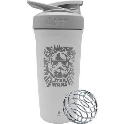Whether you’re weight training for sports, competing for gold at the Olympics, or simply aiming to lose weight and stay fit, Blender Bottle’s premium and innovative products help you maintain proper nutrition and hydration every step of the way. With the Blender Bottle Star Wars Strada 24 oz. Insulated Stainless Steel Shaker Cup, you can mix up the toughest protein and meal replacement powders. Add a banana or mix in a little ice cream. Whatever you are craving, Blender Bottle has you covered. This bottle opens effortlessly with just the push of a button. Snap shut the secure-lock lid for a quick, leakproof seal. The patented mixing system uses the BlenderBall wire whisk to deliver smooth protein and nutrition shakes with ease. The rounded base allows the BlenderBall whisk to mix every bit of powder. A flexible, ergonomic carry loop provides a comfortable hold for easy portability. Use the loop to secure keys or attach the bottle to a gym bag. Double-wall vacuum-insulated bottle keeps drinks cold for up to 24 hours with zero condensation on the bottle. Why the Whisk Ball? Unlike stationary mesh grates or other in-lid elements, the BlenderBall whips around inside the bottle as you shake. The BlenderBall is springy and bounces off both the top and the bottom of the bottle, working against the liquids. Made from electropolished 316 grade stainless steel, the same material used in surgical instruments and implants. Add ingredients like peanut butter, applesauce or yogurt to your protein or meal-replacement shakes for added flavor – the BlenderBall whips them in with ease. The BlenderBall will never rust, chip or peel. Every BlenderBall is manufactured using a unique multistage process designed to ensure safety, quality, and longevity.