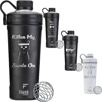 The Blender Bottle x Forza Sports 26 oz. Radian Insulated Stainless Steel Shaker Cup features rock-solid insulation, a modern center-mounted spout, a detachable carry loop, and Blender Bottle’s most secure seal to date. Say goodbye to lumpy protein shakes with the BlenderBall wire whisk. It delivers smooth protein and nutrition shake with ease, found only in Blender Bottle brand shakers. This refined shaker with a sleek, modern design is sure to stand out. Double wall vacuum insulation keeps drinks cold for up to 24 hours. Prevents condensation from forming on bottle. Versatile carry loop detaches at the base to secure your key ring or clip the bottle to your gym bag. Wide-mouth design for big scoops and easy cleaning. Sleek, modern design. 26 oz. capacity. Hand wash only. Why the Whisk Ball? Unlike stationary mesh grates or other in-lid elements, the BlenderBall whips around inside the bottle as you shake. The BlenderBall is springy and bounces off both the top and the bottom of the bottle, working against the liquids. Made from electropolished 316 grade stainless steel, the same material used in surgical instruments and implants. Add ingredients like peanut butter, applesauce or yogurt to your protein or meal-replacement shakes for added flavor – the BlenderBall whips them in with ease. The BlenderBall will never rust, chip or peel. Every BlenderBall is manufactured using a unique multistage process designed to ensure safety, quality, and longevity.
