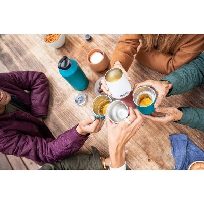 Your ultimate outdoor wingman. The strong and durable CamelBak Horizon 12 oz Camp Mug is constructed in double-walled, vacuum-insulated stainless steel with a powder coat finish, keeping it looking good on the outside and at piping hot on the inside. The tri-mode tumbler lid slides open for flow control and is spill-resistant. A non-slip silicone pad on the base provides a soft landing on surfaces to avoid scratches and spills. Dishwasher safe and free of BPA, BPS, and BPF.