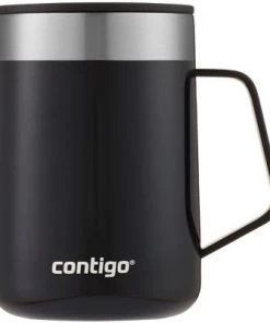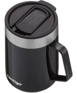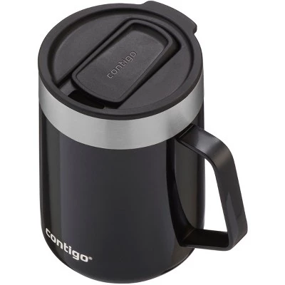 The Contigo 14 oz. Streeterville Vacuum Insulated Stainless Steel Mug combines the convenience of drinks that stay hot or cold for hours with a sophisticated design in eye-catching metallic colors. This mug is perfect for sipping coffee while working or on a short walk around the neighborhood. The comfortable handle makes drinking your favorite beverages more enjoyable and the splash-proof lid keeps your drink inside the mug when closed. Wherever you are, the non-slip grip base helps prevent the mug from slipping, clanking or scratching on surfaces. The mug conveniently fits under most single-serve brewers. Lid and body are top-rack dishwasher-safe for easy cleaning. BPA-free. Drinks stay hot for up to 5 hours and cold for up to 15 hours.