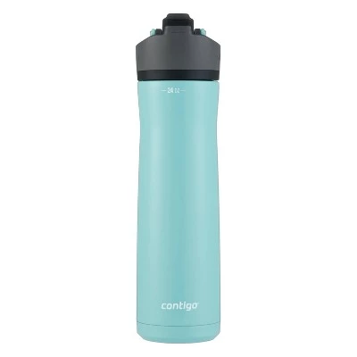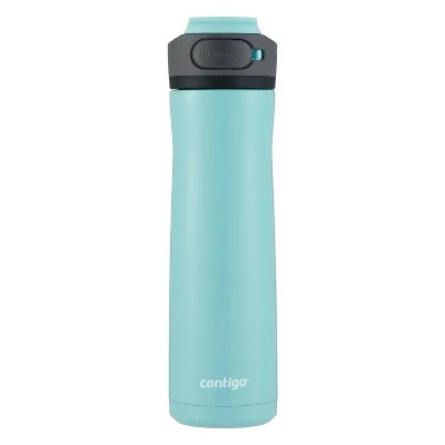 Press, sip, seal your way to better hydration. The Contigo AUTOSEAL Tritan Water Bottle lets you sip easily with just the push of a button. Whether you’re working out or working at your desk, the double-wall vacuum-insulated stainless steel body keeps drinks cold for 24 hours and hot for 6 hours. Release the button to seal the spout for 100% spill-proof one-handed drinking wherever you go. When you’re done drinking, flip down the spout cover to help protect the mouthpiece from dirt and grime. A button lock ensures the top doesn’t open accidentally. Carrying it around is easy with the integrated handle that swings up and sets back down to stay out of the way. The lid is top-rack dishwasher-safe and the underside of the lid opens up for easy cleanups. Fits most car cup holders.