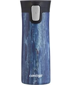 With its tasteful full-body graphics, the Contigo Couture 14 oz. Autoseal Vacuum Insulated Stainless Steel Travel Mug is functional fashion at its best. A leak and spill proof lid makes this thermal mug the go-to drinkware for your busy lifestyle. Enjoy one-handed convenience without the spills. Simply push the Autoseal button to drink and release it to seal after every sip. A lock ensures the button isn’t accidentally pushed during transit. Plus, with Thermalock double-wall vacuum insulation, your coffee stays piping hot for up to 5 hours or icy cold for up to 12 hours. The underside of the innovative BPA-free lid opens completely for thorough cleaning and is one connected piece so there are no parts to misplace. For best results, remember to hand-wash lid and body and allow the mug to dry completely with the lid off. Designed to fit in most cup holders and under most single-serve brewers.