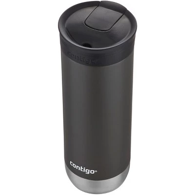 The Contigo Huron 2.0 SnapSeal Insulated Stainless Steel Travel Mug keeps drinks at their ideal temperature for hours thanks to Thermalock double-wall vacuum insulation. The 16 oz. keeps drinks hot for up to 6 hours and cold for up to 12. The 20 oz. keeps drinks hot for up to 7 hours and cold for up to 18. The one-piece SnapSeal lid allows for one-handed drinking with no lids or caps to remove or misplace and is leak-proof when closed. Available in 16 oz. and 20 oz. capacity. Fits car cup holders and under most single-serve brewers. Top rack dishwasher-safe lid, handwash body.