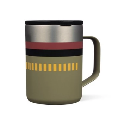 Your drinks are no good to you lukewarm. Keep your drink fresh and your fandom of Star Wars at the forefront with this Boba Fett-themed coffee mug.Whether you’re caffeinating with a hot cup of coffee or cozying up with some chamomile tea, this stainless steel keeps every sip piping hot for up to 3 hours in style. For effortless on-the-go sipping, this durable stainless steel mug transports 16 ounces of your preferred beverage. A shatter-proof, crystal clear lid easily slides open when you’re ready to take a swig and closed when you’re out and about. With ergonomic, easy-grip flat sides, this comfort-fit mug is a true treat to hold, begging to stay in your hand until empty. Stop spills in their tracks thanks to the stay-put silicone bottom, and easily remove the silicone band in your lid for quick dishwasher cleaning.Enjoy your early morning coffee, late evening tea, and everything in between with this Star Wars Corkcicle 16 Ounce Coffee Mug.