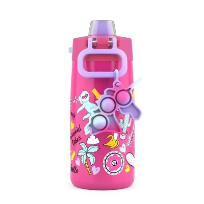 A removable silicone fidget toy is included on this bottle which is a top trend in kids items. Kids love the appeal of the fidget as they have a need to move and feel. It can also clip onto any water bottle of your choice! Hydrate safely with a Guardian® Technology antimicrobial straw, which reduces stains and odor. Antimicrobial properties are built into the silicone straw to protect the straw alone, not the user. Take it on-the-go with a built-in soft touch carry loop.
