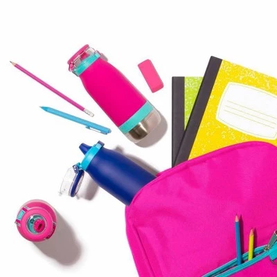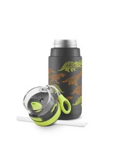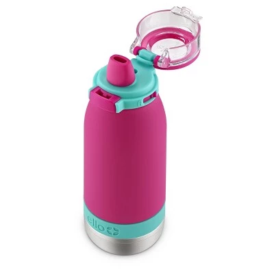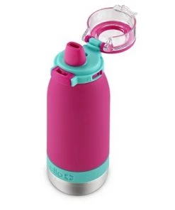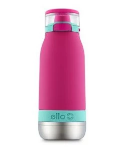 The Ello Emma 14-ounce vacuum insulated stainless steel kids water bottle keeps your little ones hydrated with cold-staying power. Vacuum insulated 18/8 stainless steel keeps beverages cold for 14+ hours. Emma’s leak-proof locking flip lid features an XL push button for smaller hands and a fully-covered and yuck-free straw that minimizes spills. A built-in carry loop makes it super easy to stay hydrated on-the-go. All Ello Kids products feature an FDA food-grade silicone spout with antimicrobial Guardian Technology that inhibits bacterial growth on the drink surface. All parts certified BPA free. Hand wash bottle recommended, lid and straw are dishwasher safe. Do not microwave or freeze. Intended for use with cold beverages only.