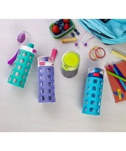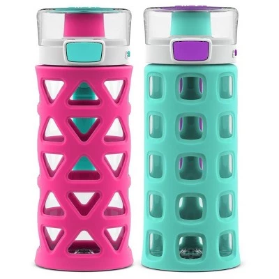 Ello Dash 16-ounce Tritan kids water bottle 2-pack is perfectly portable and recess ready. Its locking flip lid with one-handed push button makes it easier than ever to keep kids hydrated on-the-go. The 16-ounce size holds just the right amount of water, and ultra-durable Tritan plastic paired with a silicone sleeve reduces chances of breaks. Chug comfortably with Dash’s soft spout lid that threads off for ice and cleaning. All Ello Kids products feature an FDA food-grade silicone spout with Guardian Technology that keeps the drink surface clean. Pop, chug, close and go! All parts certified BPA free. All parts top rack dishwasher safe, no need to remove sleeve for cleaning. Do not microwave or freeze. Intended for use with cold beverages only.