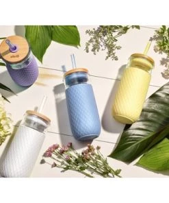 Whether you drink smoothies, iced tea, juices, or water, everything tastes better in glass! The Ello Devon 18 ounce glass tumbler with straw is designed for enjoying your favorite beverage on-the-go. A silicone sleeve provides a no-slip grip, reduces condensation and protects tabletops. Devon’s friction fit real wood lid prevents splashes for on-the-go.