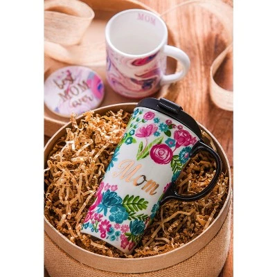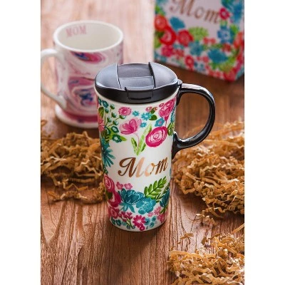 This 17 oz. ceramic cup has a colorful flower design around the metallic gold word, “Mom.” Top rack dishwasher safe and it fits in most car cup holders. It comes in a gift box. It has a handle and a leak-free lid. Not microwave safe. At Evergreen, we are committed to producing premium, quality products to bring a touch of color and personality to your home. We respect and celebrate the uniqueness in everyone by offering one of the world’s largest selections of home and garden decor.