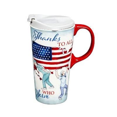 - Travel mug holds up to 17 oz. of hot or cold liquid.