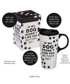 - Travel mug holds up to 17 oz. of hot or cold liquid.