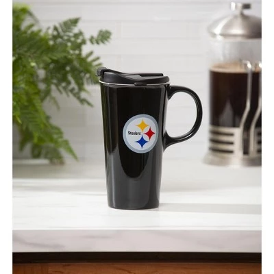 - Always travel with your favorite NFL team. The sleek design of this mug features the Pittsburgh Steelers and colors, so you can showcase your fandom wherever you go. Perfect gift for a friend or family member who is a fan of the Pittsburgh Steelers.