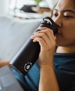 - The 18/8 stainless steel interior is both BPA & lead free, and will not leave a metallic taste in your mouth. The double walled interior also provides a sweat proof exterior to avoid any messy condensation if carried in a book bag or briefcase. The leak proof lid has a simple flip lid for easy on-the-go drinking and a wide grip handle to carry around. This tea infusion flask is the perfect size to fit most cupholders in vehicles, bicycles and backpacks.
