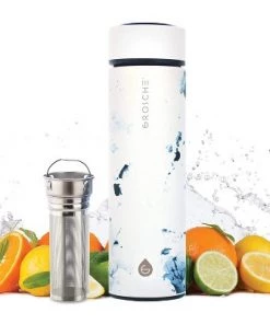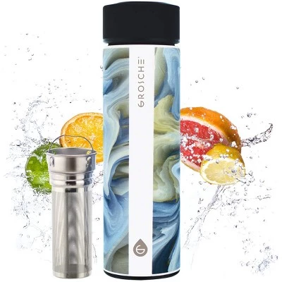 The GROSCHE CHICAGO is an all-in-one vacuum insulated stainless steel tea infuser flask with style. This stainless steel infuser bottle and travel mug is the perfect mug for hot coffee, infusing loose leaf tea, or infusing water while on the go. It is BPA-free, food-grade safe & reusable, making it much higher quality than any plastic bottle. With the vacuum insulation your beverage can stay hot for up to 12 hours and cold for up to 24 hours. The soft touch finish on the body and the lid, and the easy to use two part infuser makes this the ideal water bottle or travel tea infuser. More than a tea travel mug, its a multi-function tea and fruit infusion bottle. The bottle and lid are made of stainless steel and the body has a capacity: 450 ml/ 15.2 fl Oz.The CHICAGO infuser bottle makes the perfect gift for a tea lover with an included large two part stainless steel tea infuser, that can be used to hold your loose leaf tea, or used as a strainer to hold your fruit infusions back as you enjoy delicious fruit infused water. You can remove the infuser entirely and use it as a travel coffee mug as well. The extra long infuser steeps and infuses better than short ones.This insulated travel flask has a soft touch rubberized outer finish that makes it easy to grip and hold and it won’t easily slip out of your hand like ordinary stainless steel flasks. It’s made of vacuum insulated double walled stainless steel, and has a 18/8 stainless steel inside lid. Not for dishwasher use, its hand-wash only. Every time you buy a GROSCHE Coffee or Tea Product you’re providing 50+ days of safe water to people in need via the GROSCHE Safe Water Project. GROSCHE is a social enterprise and a certified Benefit corporation on a mission to help those without safe water, and funds its efforts with the sale of its coffee, tea, and hydration products. It makes a great gift idea as well – Its the gift that gives back.