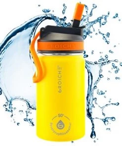 The Lil Chill by GROSCHE is a BPA free, insulated kids water bottle made with durable 18/8 stainless steel that’s built tough to handle day to day use and perfect for the playground. The Lil Chill has a double-walled vacuum insulated stainless steel body that will keep your childs beverages cold for up to 24 hours. It also has a leak proof sippy flip lid that kids can easily handle. Simply flip up the lid to drink, and flip it down to seal up the flask.These kid approved bottles are great for at home, school or on the go with the flexible silicone handle and straw. The easy-to-use sippy lid can flip open and closed to avoid messy leaks, and can be used with or without the internal straw, depending on your preference! The Lil Chill has a 12 fl. Oz capacity which is enough for your kids to stay hydrated without making it too heavy to handle or carry. The convenient size fits in most backpacks and lunch boxes easily. The fun and bright colors make these pleasing to the eye, yet classic and bold with their durable powder coated paint finish.Every time you buy a GROSCHE product you are providing 50+ days of safe water to someone in need with purchase. Each Lil Chill kids water bottle is engraved with the 50+ days of safe water emblem to affirm the change that you’ve made in someone’s life by choosing GROSCHE. You can also use this 12 fl. oz insulated stainless steel water bottle for milk, juice or any other cold beverage of choice. They are BPA and lead free, and hand washing is recommended. GROSCHE is a social enterprise and a certified Benefit corporation on a mission to help those without safe water, and funds its efforts with the sale of its coffee, tea, and hydration products. It makes a great gift idea as well – Its the gift that gives back.