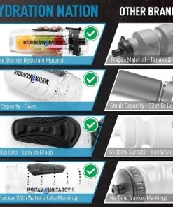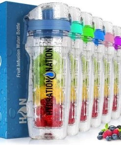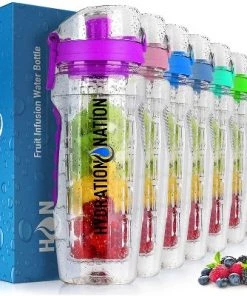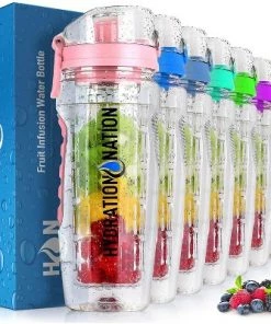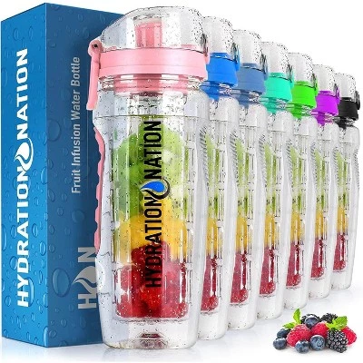 Staying hydrated throughout the day is easier said than done especially if you are used to tasty drinks such as soda, energy drinks, coffee, etc. With the Hydration Nation water bottle, you can now add in tasty fruits and vegetables in your water for an extra burst of flavor. Made with BPA-free shatter resistant Tritan material that is durable and long lasting. Its full-length infuser rod is built to amplify each sip of infused water to its full flavor potential. Lightweight, comfortable to hold and use, this high quality 34oz water bottle is constructed with a flip top mechanism that secures itself around an airtight seal, preventing any leaks even when you put it in your bag. It’s designed with easy handling rubber on the side to prevent it from slipping out of your hand. Best of all, it fits in most car standard cup holders. Whether you’re at work, at the gym, or just hanging out at home, this water bottle can accompany you anywhere you might need it. The full length infusion rod holds a large amount of fruit making it possible to quickly and easily make flavored water that has zero sugar and zero calories, and still give you total hydration. Designed with time-markings to track your water intake. If you’re trying to get yourself to drink more water- this is definitely what you need! The wide mouth design makes this water bottle easy to clean and get a washcloth or sponge inside of it without any issues. To assemble: simply insert infuser, add preferred fruits or veggies, and fill with water to infuse. Top-rack dishwasher friendly.