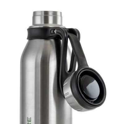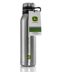 The John Deere 25.5 Ounce Stainless Steel Thermal Bottle with Cap and Carry Loop makes it easy to carry drinks around with you where ever you go. The vacuumed sealed insulated bottle maintains hot and cold beverages up to 12 hours. Ideal for “on the go”, the double wall container keeps the exterior of the bottle cold so you can carry around hot drinks. Bring along as a hydration bottle to runs, hikes, or other active outdoor activities. the worry free leak resistant cap prevents unwanted spills. Great for bringing coffee or tea for late night jobs or early birds. This bottle is made of light weight stainless steel and is hand wash only.