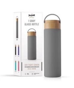 - Product Name: Glass Water Bottle with Carry Strap & Non Slip Silicone Sleeve – 20 oz – Grey