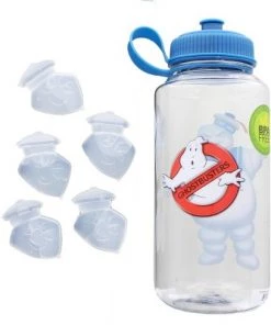 - FUN DESIGN: Clear water bottle features an image of the Stay Puft Marshmallow Man. Includes five (5) plastic ice cubes shaped liked Stay Puft’s head!