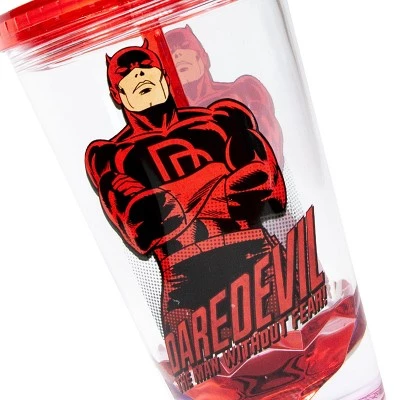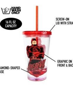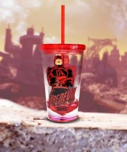 IT GETS HOT IN HELL’S KITCHEN – STAY HYDRATED!Kicking butt and taking names along side this vigilante? Make sure to grab this water tumbler to take along! Load it up with 18 oz. of your favorite drink and you’re good to go! Fans of Daredevil will enjoy this retro-style comic that is plastered on the front. Enjoy quick and easy hydration all day long using the easy-to-use straw and lid combo!AN OFFICIALLY LICENSED COLLECTIBLELooking to expand your collection of Daredevil and Marvel related items? This unique water bottle would make a perfect addition to your myriad of super hero gems. This officially licensed bottle is also a great gift for friends and fans of Daredevil. Enjoy the smile that others will have as they open up this amazing tumbler!