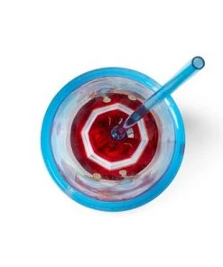 - Cup includes red straw and screw down lid. Not dishwasher or microwave safe. Hand wash only.