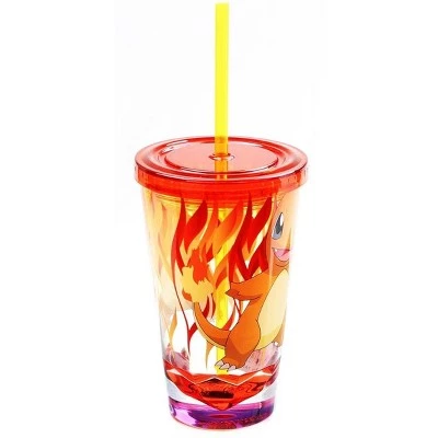 - Carnival cup features a quality image of everyone’s favorite pokemon Charmander, and includes a doubled wall design with water and a lightning bolt confetti design.