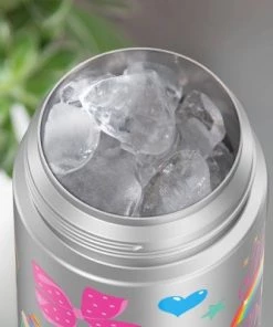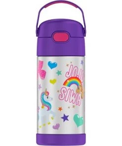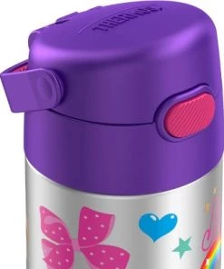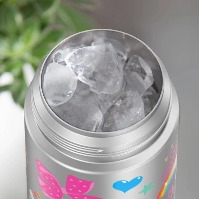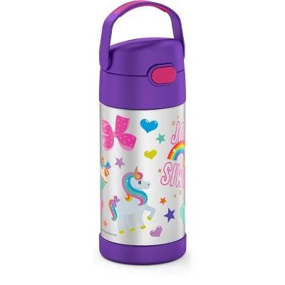 Kids love FUNtainer® products from Thermos® brand, but parents love them even more. The FUNtainer 12oz Vacuum Insulated Stainless Steel Water Bottle with a silicone straw keeps drinks cold for up to 12 hours. No make believe required. FUNtainer products are always made with love from BPA-free materials. The double wall stainless steel construction is built to handle drops, dings and assorted roughhousing. The 12oz bottle includes an integrated carry handle with soft-touch grip, making it easy for kids to carry with them throughout the day. The handle can also be folded down when not in use. Help keep germs away with the hygienically covered straw which is removable for easy cleaning. To clean, you can pop your FUNtainer water bottle in the dishwasher; however hand washing is recommended. Not for use with hot liquids.