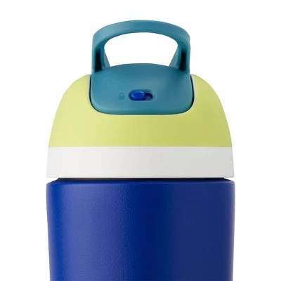 - 14-ounce insulated stainless-steel flip-top water bottle, featuring flip straw, locking lid, and kid-friendly operation