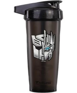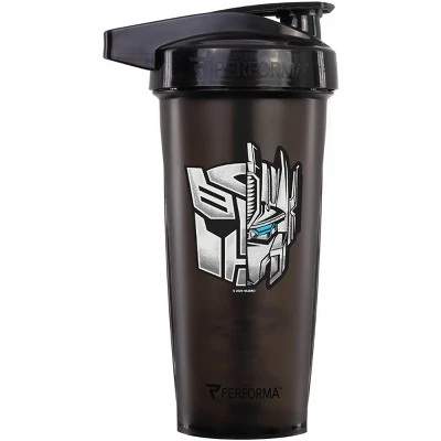 The Performa Activ 28 oz. Transformers Collection Shaker Cup is officially licensed! Every Performa Shaker Cup is built to deliver against any demands it will endure. Mix, pour, and store all in the same container! The Actionrod Technology amplifies the kinetic energy in the shaker cup for the ultimate smooth mix. It features duraplex shatter-resistant plastic to ensure maximum impact and shock absorption. Finally, the extra-last UV ink is designed to protect from fading and chipping. 28 oz. capacity. 100-percent Leak-Free. BPA-free, food grade plastic. Lightweight and portable with extra wide mouth. Dishwasher safe.