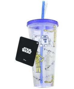 - FUN DESIGN: Tumbler features Japanese writing with the droids R2-D2 and C-3PO drawn in a fun, child-like manner.