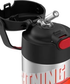 Kids love FUNtainerĀ® products from ThermosĀ® brand, but parents love them even more. The FUNtainer 12oz Vacuum Insulated Stainless Steel Water Bottle with a silicone straw keeps drinks cold for up to 12 hours. No make believe required. FUNtainer products are always made with love from BPA-free materials. The double wall stainless steel construction is built to handle drops, dings and assorted roughhousing. The 12oz bottle includes an integrated carry handle with soft-touch grip, making it easy for kids to carry with them throughout the day. The handle can also be folded down when not in use. Keep germs away with the hygienically covered straw which is removable for easy cleaning. To clean, you can pop your FUNtainer water bottle in the dishwasher; however hand washing is recommended. Not for use with hot liquids.