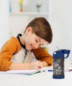 Kids love FUNtainer® products from Thermos® brand, but parents love them even more. The FUNtainer 12oz Vacuum Insulated Stainless Steel Water Bottle with a silicone straw keeps drinks cold for up to 12 hours. No make believe required. FUNtainer products are always made with love from BPA-free materials. The double wall stainless steel construction is built to handle drops, dings and assorted roughhousing. The 12oz bottle includes an integrated carry handle with soft-touch grip, making it easy for kids to carry with them throughout the day. The handle can also be folded down when not in use. Keep germs away with the hygienically covered straw which is removable for easy cleaning. To clean, you can pop your FUNtainer water bottle in the dishwasher; however washing by hand is recommended. Not for use with hot liquids. Customize your FUNtainer bottle with adhesive name labels that can be firmly adhered to any FUNtainer product. Two peel and stick labels are included inside this FUNtainer product. Fun for the kids, and easy for the parents. Just write, peel and stick!