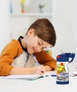 Kids love FUNtainer® products from Thermos® brand, but parents love them even more. The FUNtainer 12oz Vacuum Insulated Stainless Steel Water Bottle with a silicone straw keeps drinks cold for up to 12 hours. No make believe required. FUNtainer products are always made with love from BPA-free materials. The double wall stainless steel construction is built to handle drops, dings and assorted roughhousing. The 12oz bottle includes an integrated carry handle with soft-touch grip, making it easy for kids to carry with them throughout the day. The handle can also be folded down when not in use. Keep germs away with the hygienically covered straw which is removable for easy cleaning. To clean, you can pop your FUNtainer water bottle in the dishwasher; however washing by hand is recommended. Not for use with hot liquids. Customize your FUNtainer bottle with adhesive name labels that can be firmly adhered to any FUNtainer product. Two peel and stick labels are included inside this FUNtainer product. Fun for the kids, and easy for the parents. Just write, peel and stick!