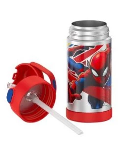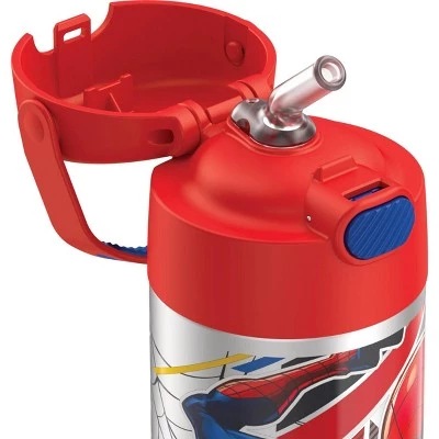 Kids love FUNtainer® products from Thermos® brand, but parents love them even more. The FUNtainer 12oz Vacuum Insulated Stainless Steel Water Bottle with a silicone straw keeps drinks cold for up to 12 hours. No make believe required. FUNtainer products are always made with love from BPA-free materials. The double wall stainless steel construction is built to handle drops, dings and assorted roughhousing. The 12oz bottle includes an integrated carry handle with soft-touch grip, making it easy for kids to carry with them throughout the day. The handle can also be folded down when not in use. Keep germs away with the hygienically covered straw which is removable for easy cleaning. To clean, you can pop your FUNtainer water bottle in the dishwasher; however hand washing is recommended. Not for use with hot liquids.