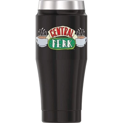 Celebrate your favorite 90s TV show with the Thermos 16 oz. FRIENDS Vacuum Insulated Stainless Steel Travel Tumbler! This tumbler keeps your drinks hot or cold for hours on end so you can enjoy all day long. The exterior stays cool to the touch with hot liquids and sweat-proof with cold. It features a convenient slide lock lid that is easy to open and helps prevent spills or leaks from happening. Suitable for hot or cold beverages. BPA-free materials. Fits most car cup holders.