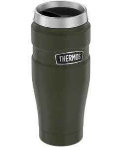 The Thermos 16 oz. Stainless King Vacuum Insulated Stainless Steel Travel Mug is as powerful as it gets. Keep your beverages hot for up to 7 hours or cold for up to 18 hours. The exterior stays cool to the touch with hot beverages and sweat-proof with cold beverages. Combined with the reliable DrinkLock leak-proof lid and built-in hook for brewing tea, this travel mug is the perfect way to make sure your morning routine never loses steam. The durable double wall stainless steel has an exterior that stays cool to the touch with hot beverages and sweat-proof with cold. Please Note: The finish of these mugs (matte or glossy) may vary depending on availability.