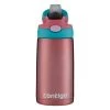 The FUNtainer® 16-ounce Vacuum Insulated Stainless Steel Water Bottle with Spout keeps drinks cold for up to 12 hours. The double wall stainless steel construction is built to handle drops, dings and assorted roughhousing. Includes an integrated carry handle with soft-touch grip, making it easy for kids to carry with them throughout the day. Keep germs away with the hygienically covered drinking spout. To clean, you can pop your FUNtainer water bottle in the dishwasher; however washing by hand is recommended.