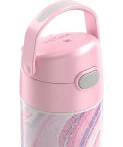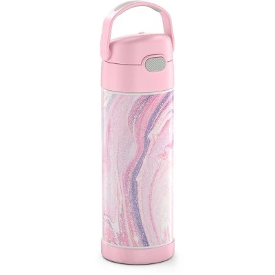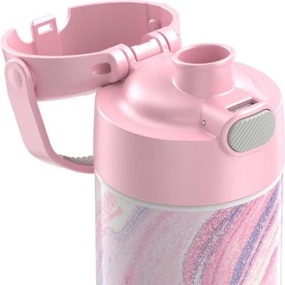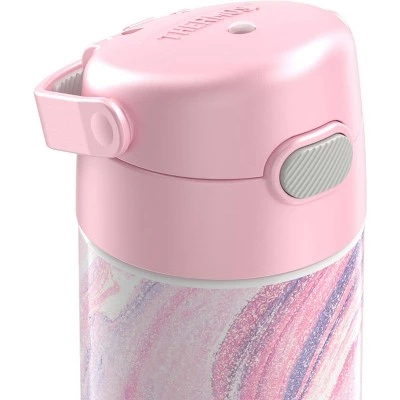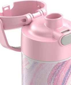 The FUNtainer® 16-ounce Vacuum Insulated Stainless Steel Water Bottle with Spout keeps drinks cold for up to 12 hours. The double wall stainless steel construction is built to handle drops, dings and assorted roughhousing. Includes an integrated carry handle with soft-touch grip, making it easy for kids to carry with them throughout the day. Keep germs away with the hygienically covered drinking spout. To clean, you can pop your FUNtainer water bottle in the dishwasher; however washing by hand is recommended.