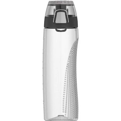 The Thermos 24 oz. Eastman Tritan Flip-Cap Hydration Water Bottle makes it easy to stay hydrated throughout the day. Nothing is more vital to staying healthy and fit than proper hydration! This water bottle is made from BPA-free, durable and impact-resistant Eastman Tritan co-polyester. Incorporated into the lid is a rotating intake meter so you can monitor your daily water consumption. With an ergonomic design that is comfortable to grip and a flip up carrying loop, this bottle is great for long walks, workouts and wherever life takes you. Dishwasher safe!