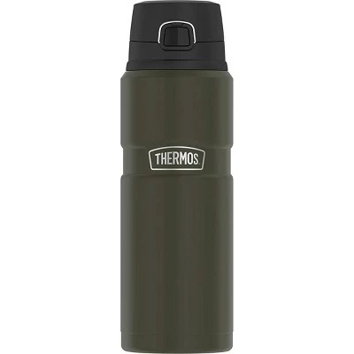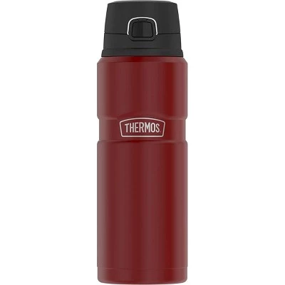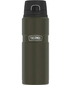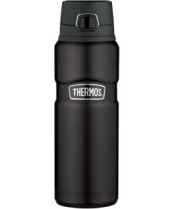 The Thermos 24 oz. Stainless King Drink Bottle is an absolute must-have for camping and outdoor enthusiasts. Its large volume is a plus and features vacuum insulation technology to keep drinks hot for up to 18 hours and cold for up to 24 hours! The smooth flow lid helps control the flow of liquids. The lid also has a push button with locking ring to help it stay leak-proof when locked closed. The exterior is sweat-proof and this bottle is top-rack dishwasher safe. Product Size (W x D x H): 3.4″ x 3.4″ x 10.4″. Please Note: The finish of these bottles (matte or glossy) may vary depending on availability.