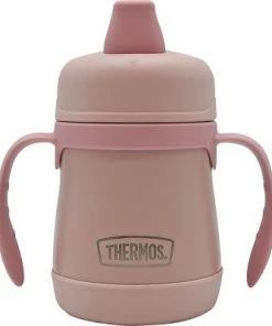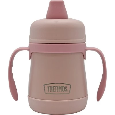 The Thermos Baby 7 oz. Vacuum Insulated Stainless Steel Sippy Cup features handles for your little one to easily grasp while using. The interchangeable lid system allows you to switch out for other lids when your child is ready (sold separately). This sippy cup is crafted with high quality 18/8 stainless steel with vacuum insulation to keep beverages cold. Ideal for ages 6 months and up. Dishwasher safe. Please Note: Not for use with hot liquids.