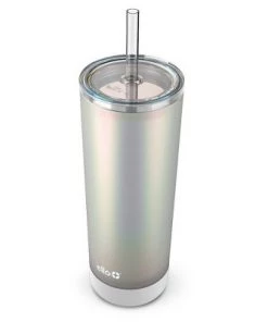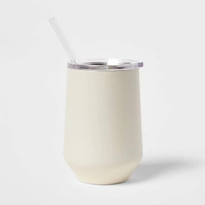 Whether it’s time for an evening drink or refreshing juice in the morning, this 12-Ounce Stainless Steel Wine Tumbler with Slide Lid and Straw will help you drink your favorite beverages in convenience and style. Made with stainless steel, this lidded tumbler features a slightly curved silhouette at the bottom for a stylish look. The slide lid and straw give you versatile drinking options — use it at home, at the office or carry it along to stay hydrated on the go.