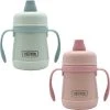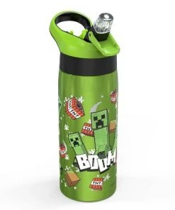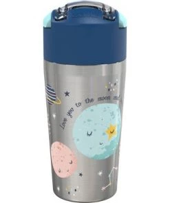 This kids water bottle holds 16 ounces and is made of durable, BPA-free plastic. The screw-on lid has a built-in carrying loop for easy transportation, and doesn’t leak when it’s closed, so the drinking bottle can be tossed into a bag for worry-free travel. The spout also includes a cover so it stays clean when it is not being used. Everything is dishwasher safe, though to keep the artwork bold and bright, we recommend hand washing. Do not microwave.