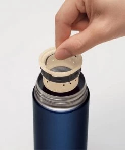 The Stainless Mug with Tea Leaf Filter features a Tea Leaf Filter for steeping fresh tea right inside the mug and stops tea leaves from flowing out while drinking. It has a smaller diameter than previous mugs for an easier grip.